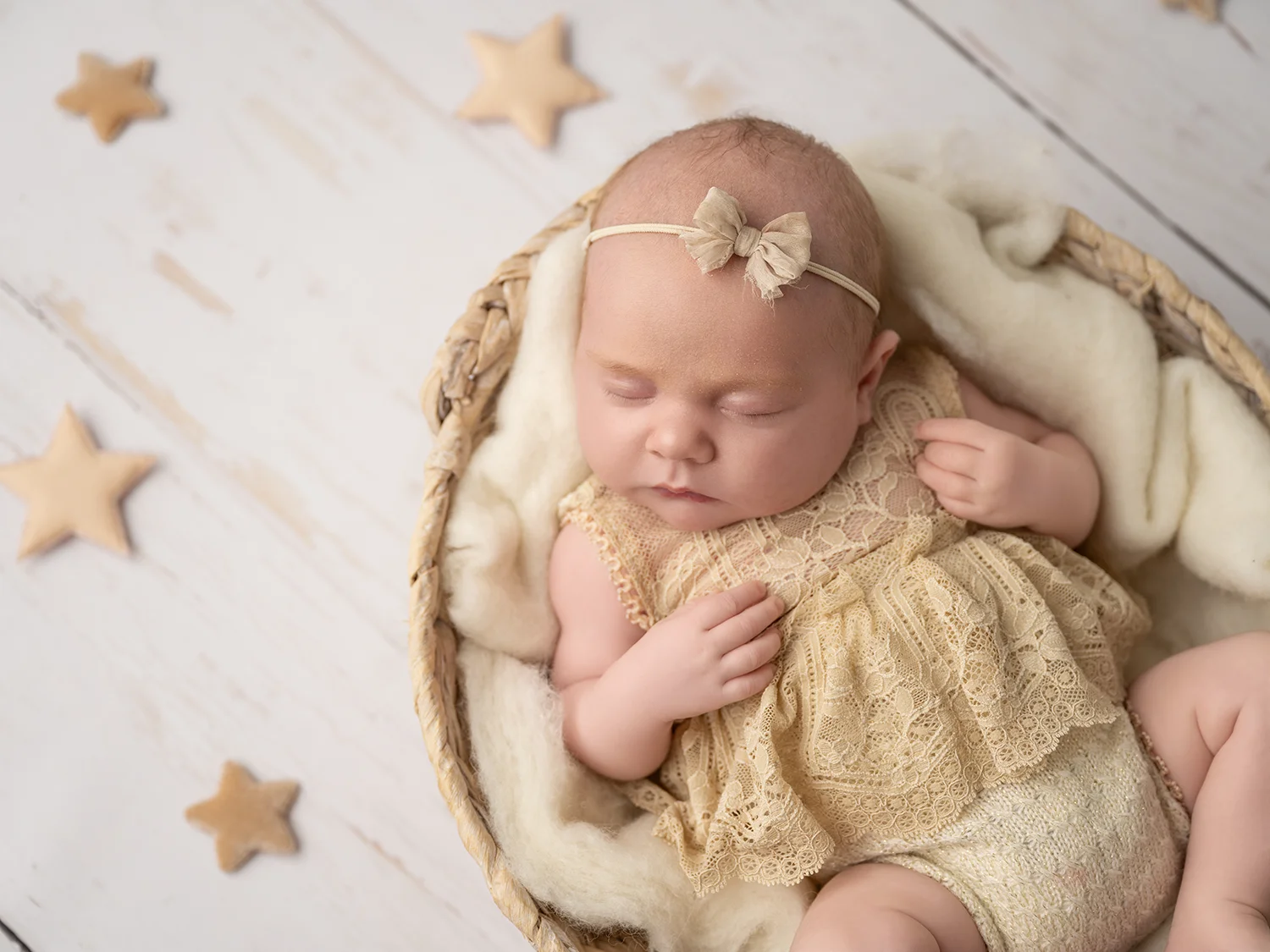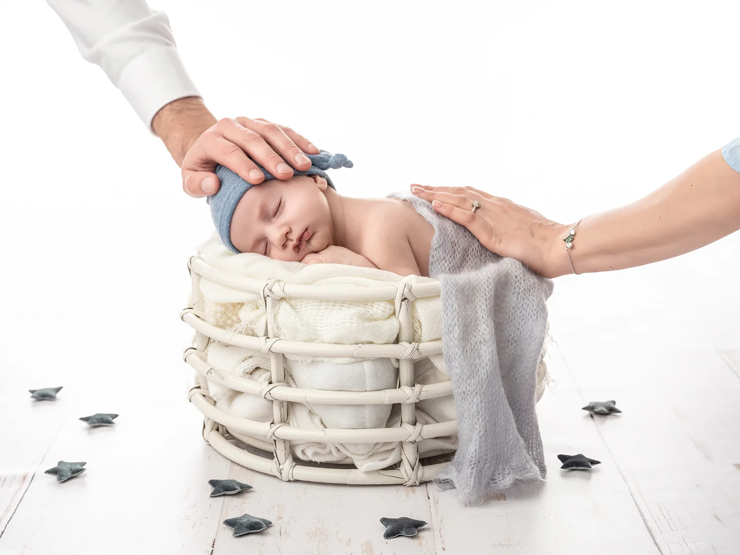 La durée d’une séance photo au studio Sophie Maré est généralement de 3 à 4 heures, afin de respecter pleinement le rythme naturel du bébé. Ce temps permet de réaliser la séance en douceur, sans précipitation, pour capturer des moments authentiques et spontanés.